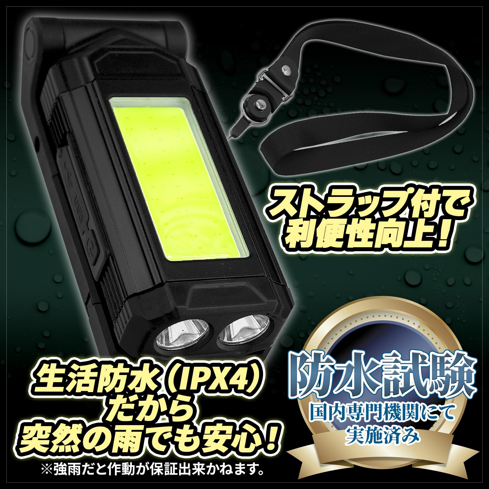 【在庫処分】LED作業灯 折りたたみ式ワークライト 防水 USB充電式 マグネット付き 懐中電灯 COBライト モバイルバッテリー 犬の散歩用 アウトドア用 ワンタッチリングストラップ付(ブラック) | ニコニコSHOP