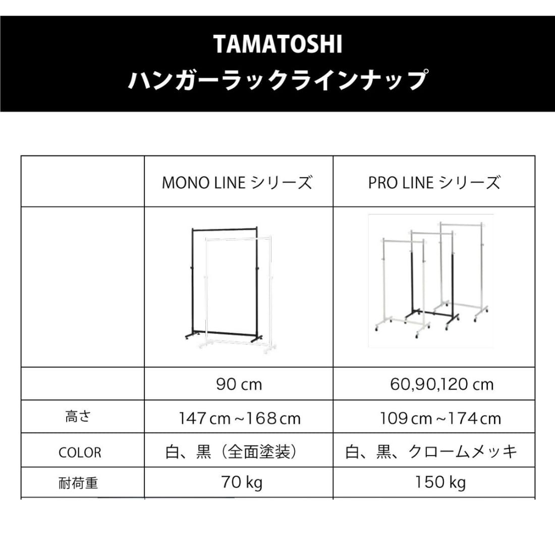 タマトシ インテリア ハンガーラック 高さ調節 組立簡単 幅90cm W900 通常品 オールブラック