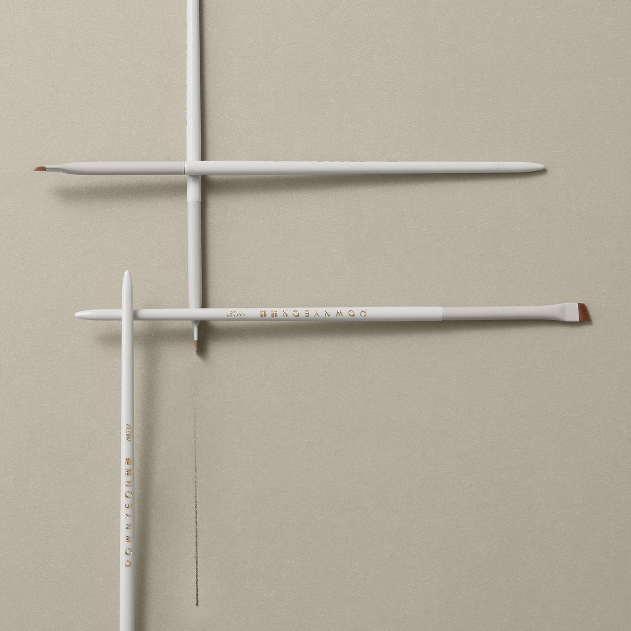 【斜めアイライナーブラシ】ROWNYEONは化粧筆の専門ブランドで、様々な種類のメイクブラシを製造しております。このアイライナーブラシは斜めカット設計なので、一筆でスムーズにラインを描きます!とても便利です。