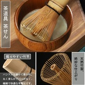 《お取り扱いについて》:1.新しい茶筌を使い始める時はたらいやボウルを使って80℃程度の水洗いをし、その後お湯で湯通し(茶筌通し)をして下さい。 2.使った後は、水で振り洗いをし、 茶筅直し等で直射日光の当たらない風通しのよい場所でしっかり乾かしてから、温度や湿気の変化の少ない冷暗所に収納してください。竹は乾燥や急激な温度変化によって割れたり、ヒビが入ることがあります。 3.食洗器、食器用洗剤の使用はNGです。