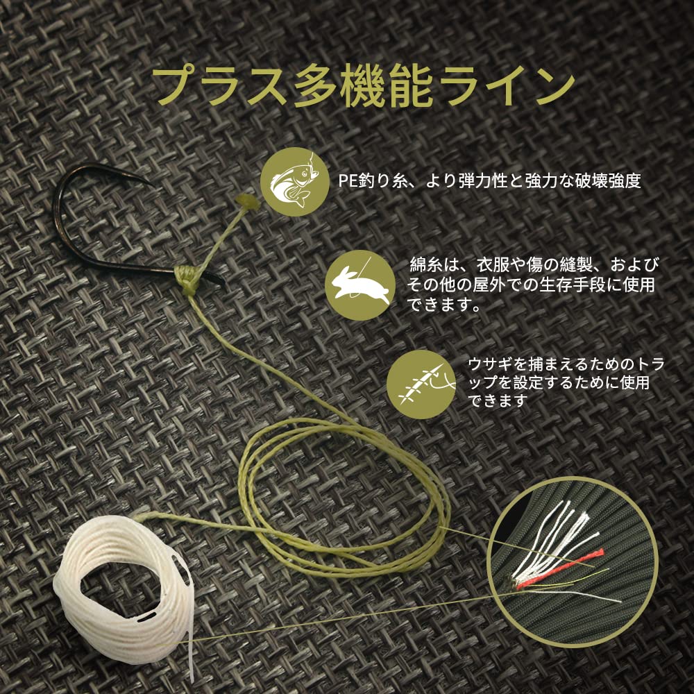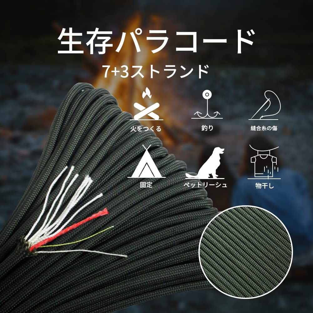 多用途:サバイバルパラコードは、登山、緊急用、釣り、キャンプ、固定テント、梱包、ハイキング、罠を仕挂けるなどの用法があります。 ファイヤーコードがアウトドア活動で緊急ファイヤーを起こすこともできます。
