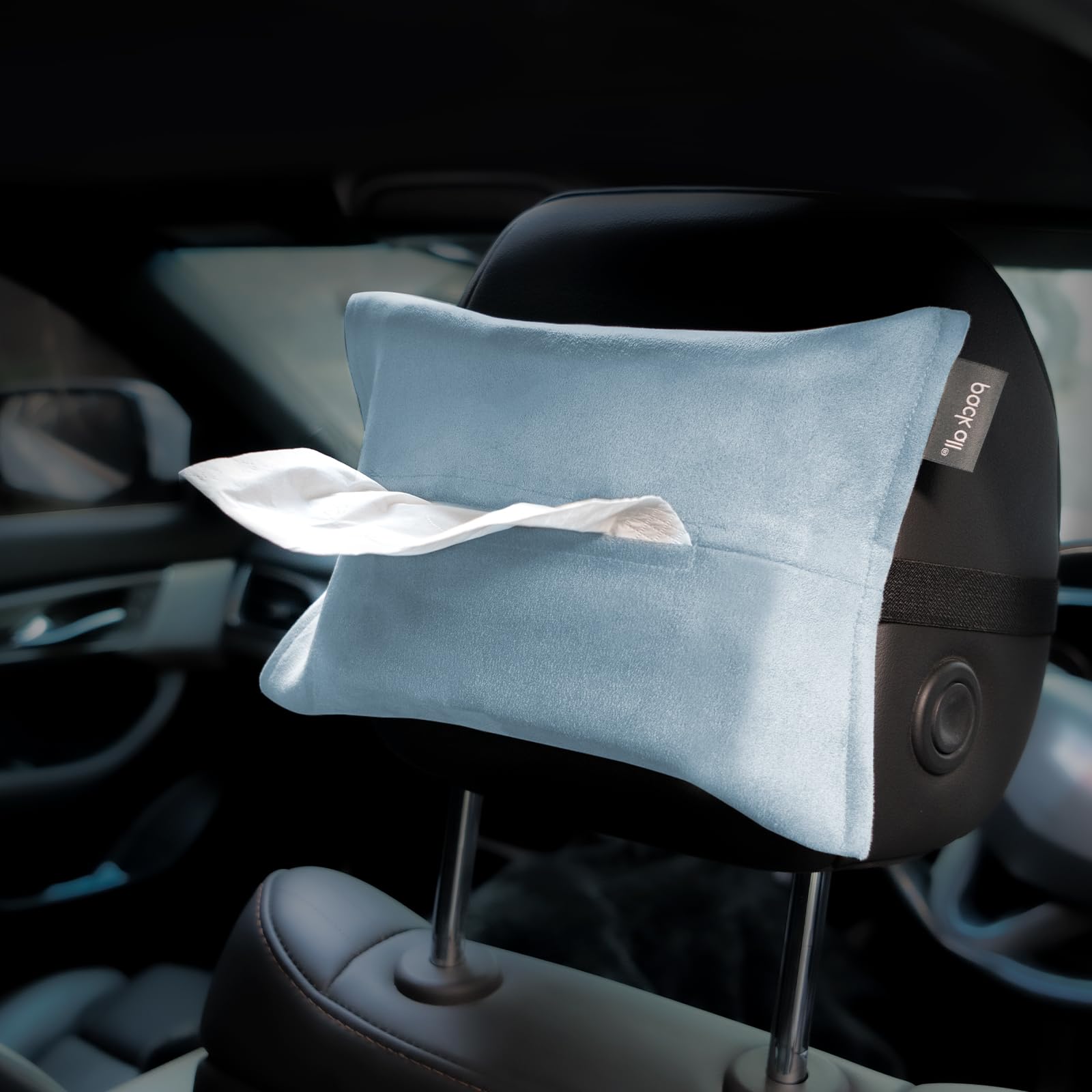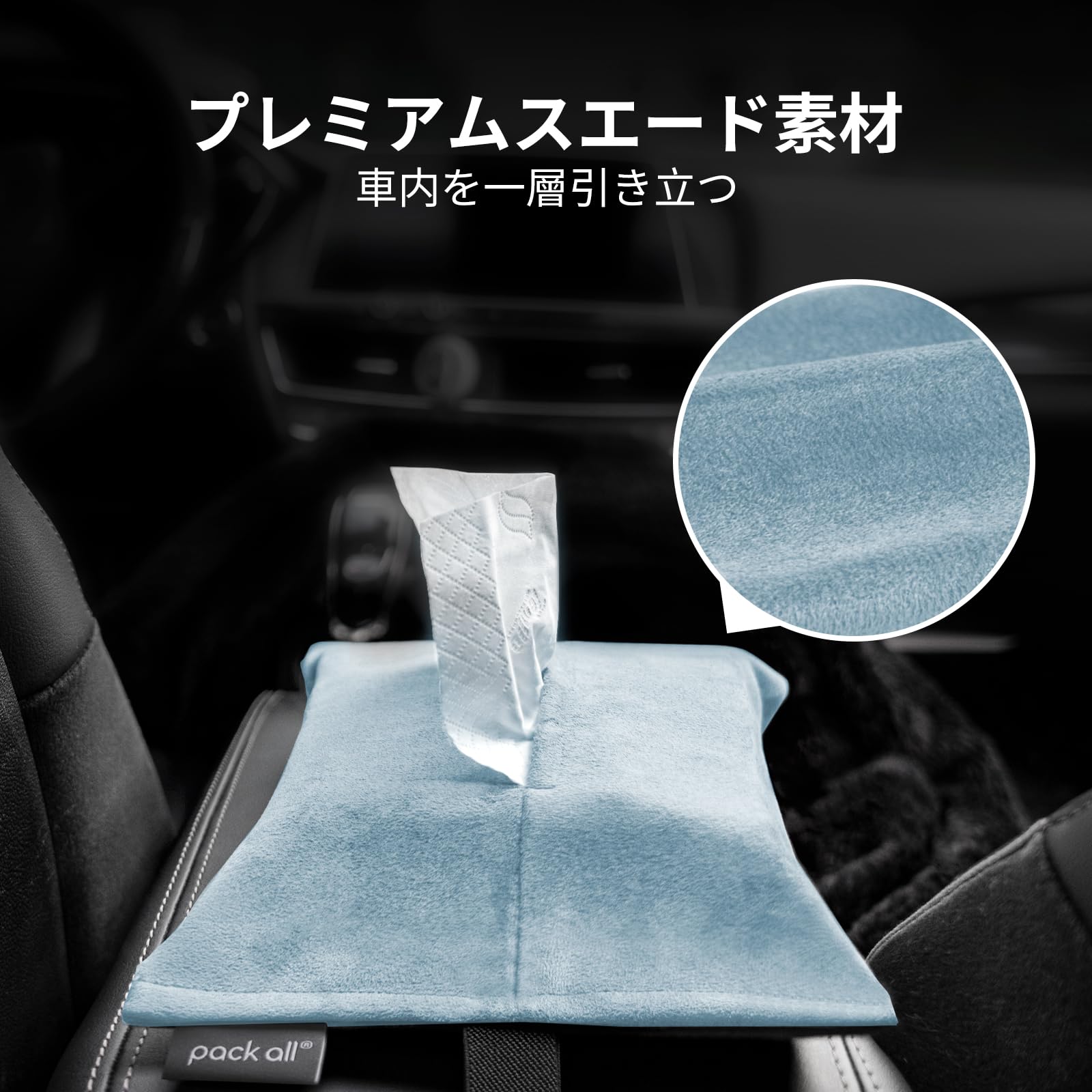 pack all ティッシュケース 車用 ティッシュカバー スエード生地 サンバイザー ヘッドレスト車内用品 収納 車載 ティッシュボックス (ライトブルー)