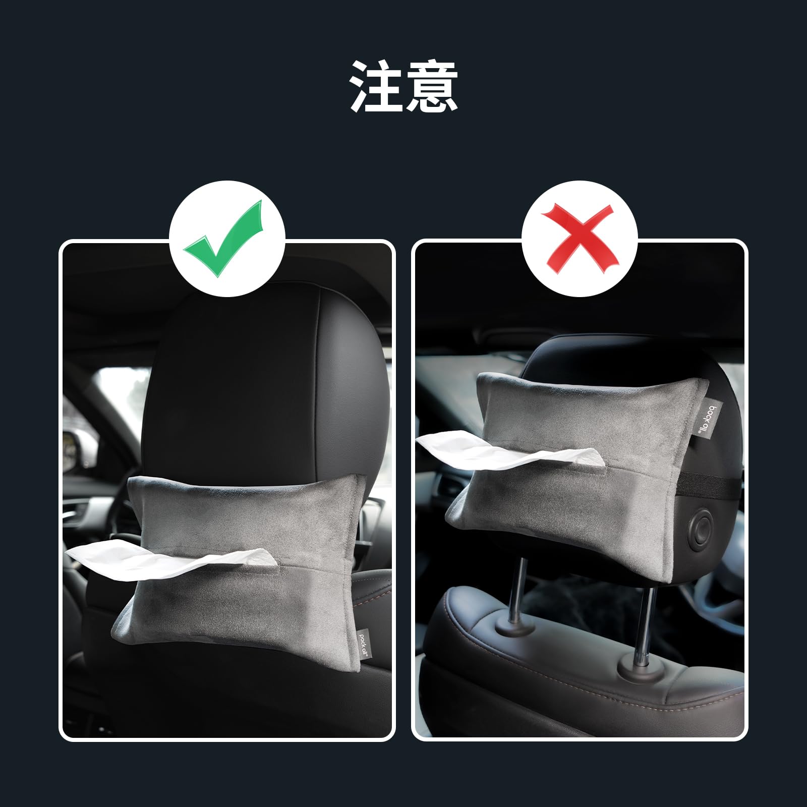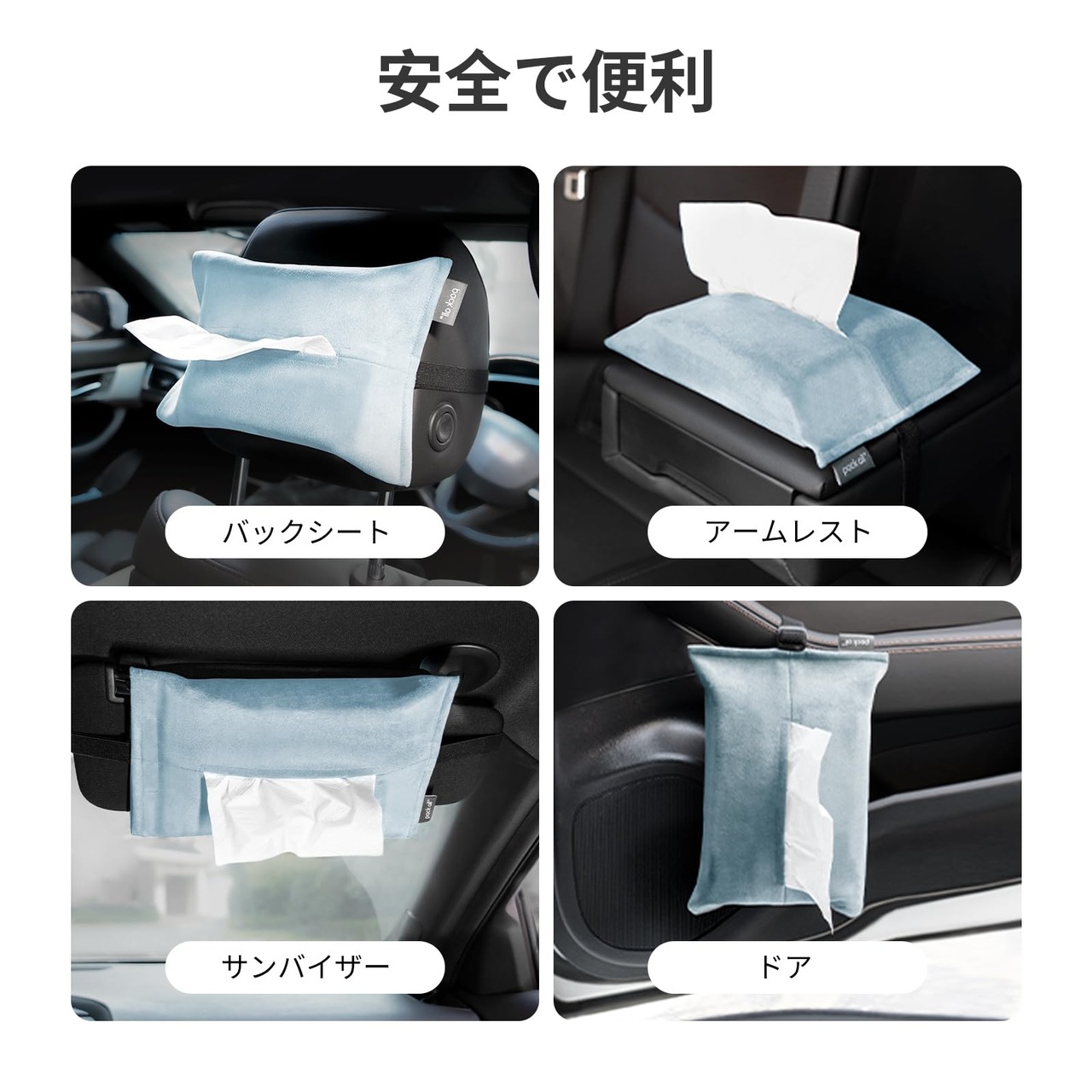 取り付け簡単:背面のゴム付きスナップでサンバイザーやヘッドレストの後ろにしっかり固定し、マジックテープ式のゴムを使用します。 伸縮性のあるストラップで、シートやサンバイザーを傷つけることがありません。 使いやすく、手軽に装着できます(箱なしティッシュのみ適していますのでご注意ください)