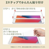 専用ガイド枠付き: お客様が貼りやすいように、専用のガイド枠が同梱されています。ガイド枠をしっかりとタブレットにはめ込み、フィルムをガイド枠のインカメのある側にしっかりとあてて、保護シールを剥がしながら置くだけで、シリコン自己吸着層により、綺麗に密着できます。