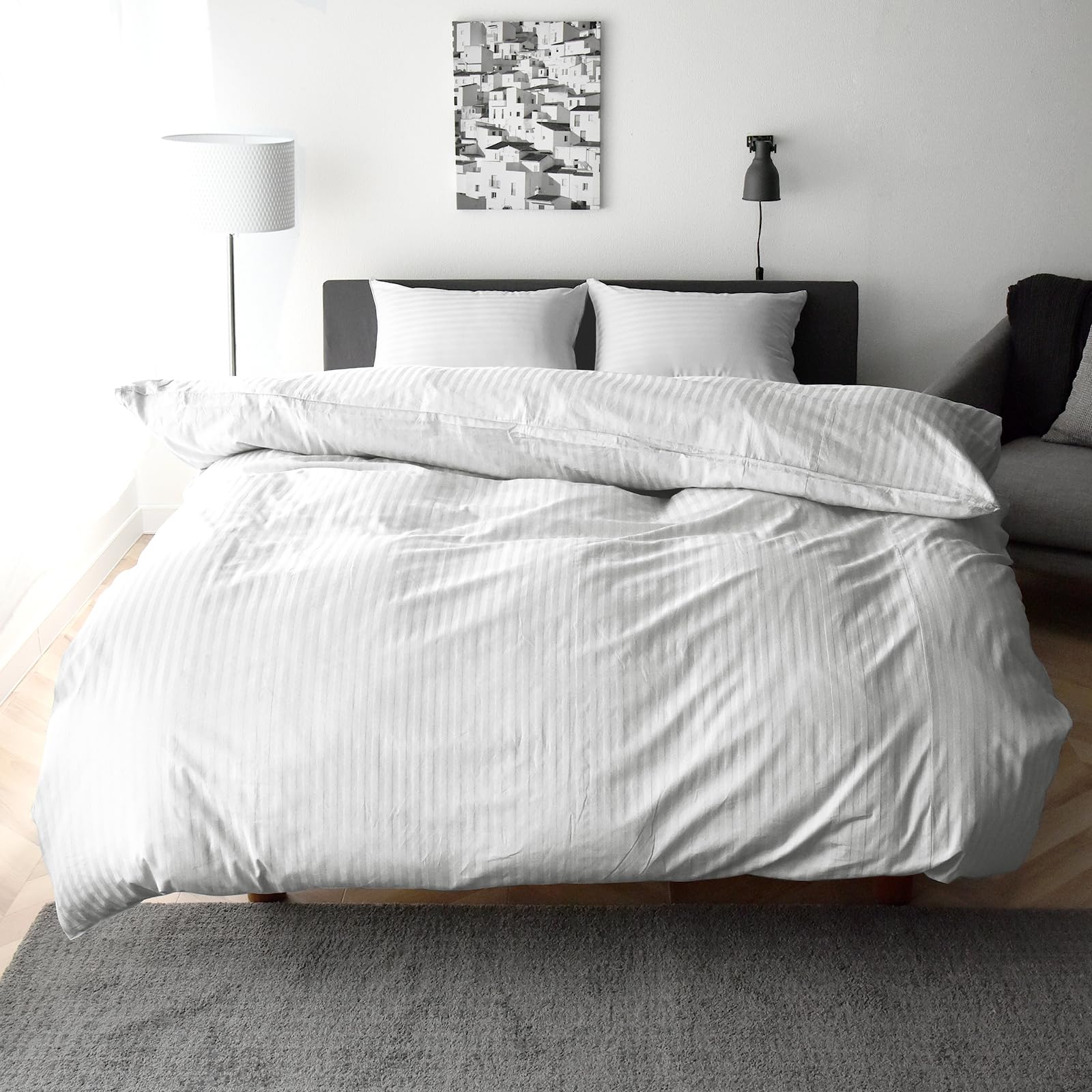 【特価セール】日本製 掛け布団カバー ダブル 綿100% サテンストライプ 高密度生地315本 防ダニ 高級ホテル 布団カバー 北欧 おしゃれ コットン 掛けカバー エトワール (ダブル スノーホワイト) | ニコニコSHOP
