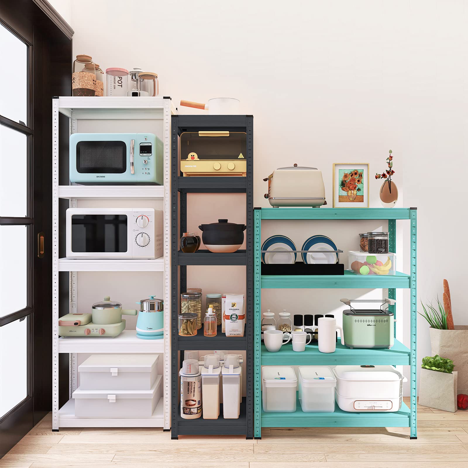 シンプルなデザインでキッチンやリビングなど場所を選ばずお使いいただけます。台所の炊飯器やトースター、食器をキレイに収納したい方、納戸や倉庫、クローゼットの中の整理整頓をしたい方にも満足いただける抜群の収納力。