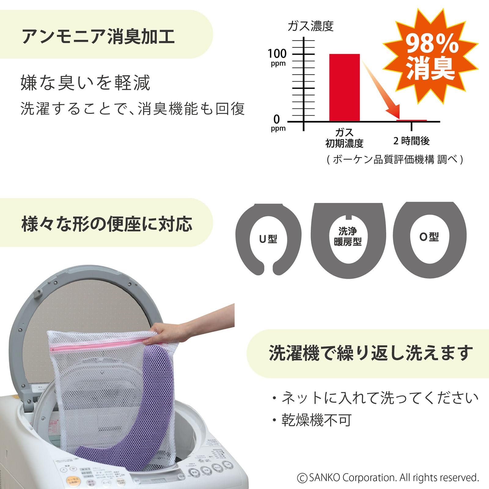 【日本製 消臭 洗える】サンコー ずれない ふんわりタイプ トイレ 便座カバー 9mm バイオレット おくだけ吸着 KF-68