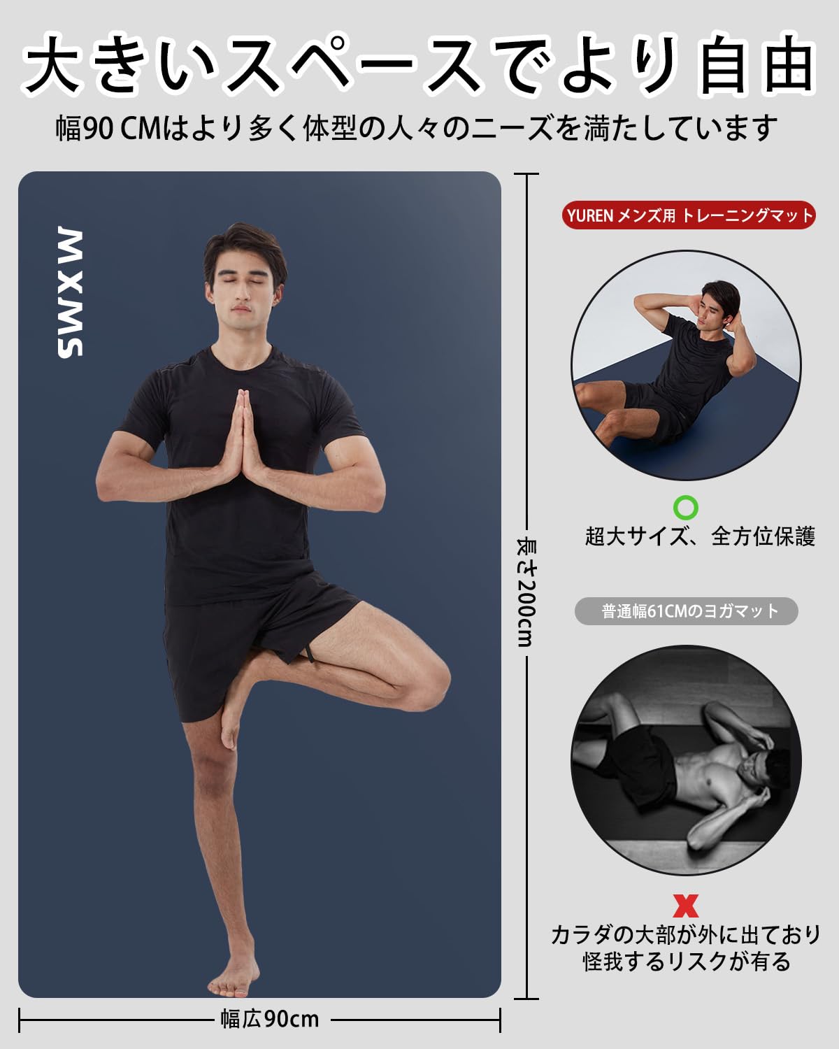 【新春セール】YUREN メンズ用 トレーニングマット 幅広 90*200cm 極厚 10mm 15mm 特大 ヨガマット 高密度 ニトリルゴム 筋トレマット ピラティス エクササイズ マット 滑り止め 初心者 収納バッグ付き | ニコニコSHOP