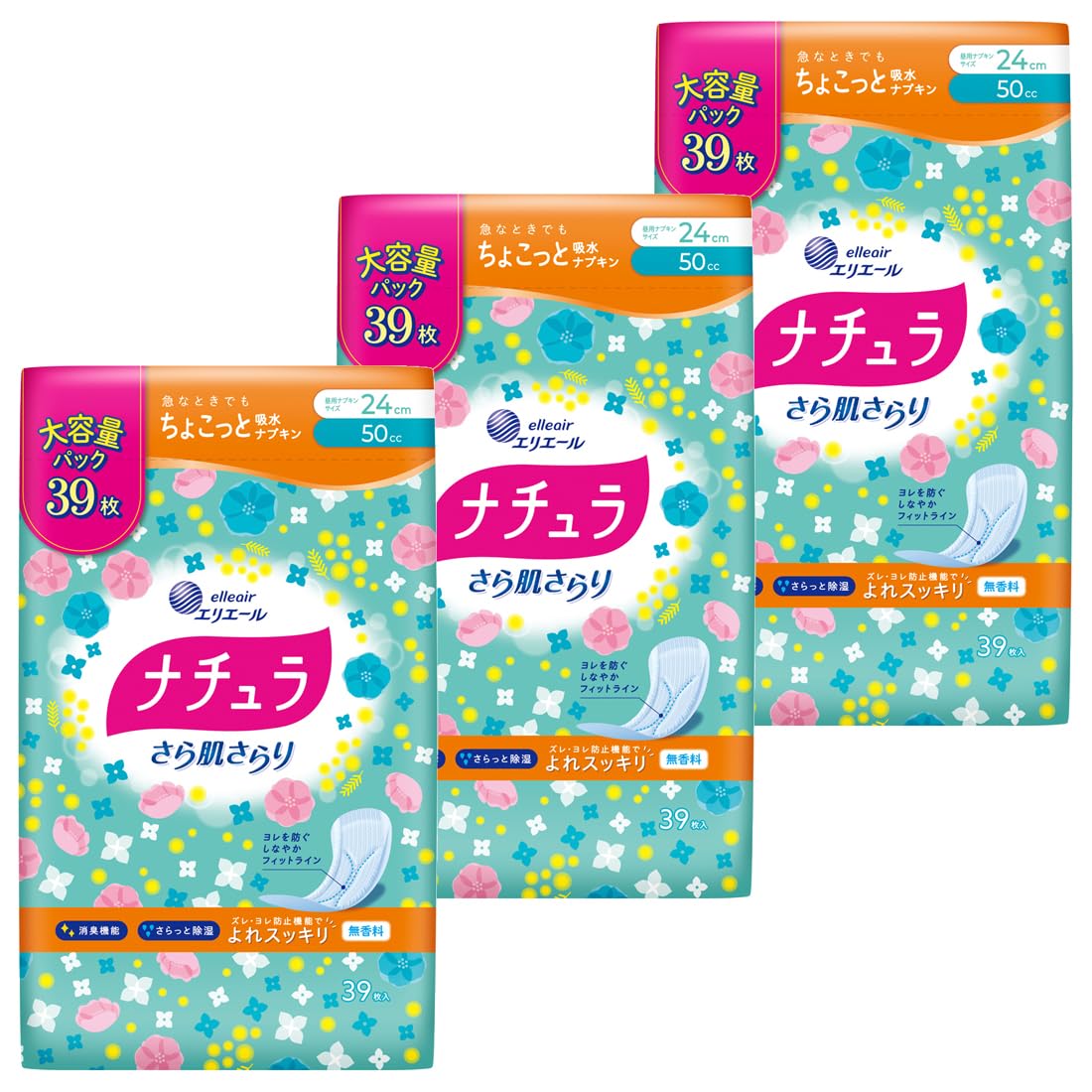 ナチュラ さら肌さらり よれスッキリ 吸水ナプキン 50cc 24cm 117枚(39枚×3パック)【大容量】【まとめ買い】