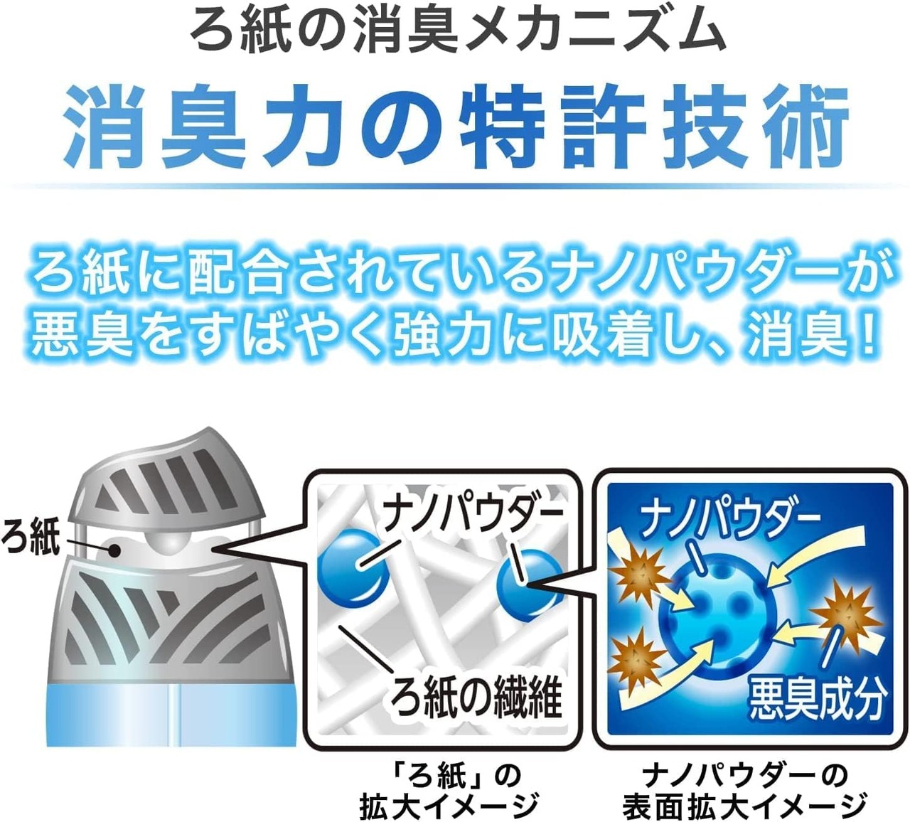 【ナノパウダー※配合】すばやく強力に空間を消臭。※ナノレベルの孔(あな)を持つ、悪臭を吸着する消臭剤。