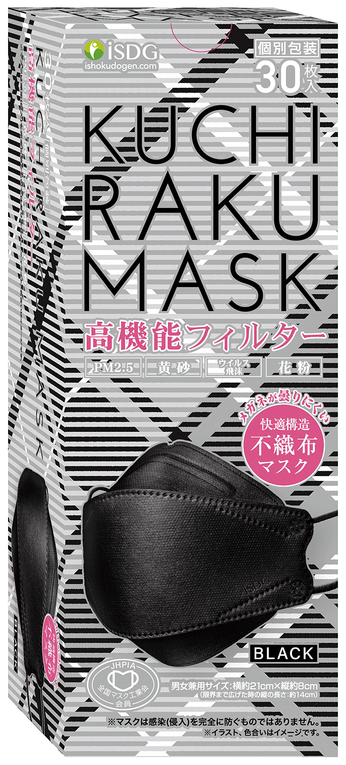 [医食同源ドットコム] iSDG KUCHIRAKU MASK (クチラクマスク) ブラック 30枚入 ダイヤモンド型 くちばし型 メイクが付きにくい