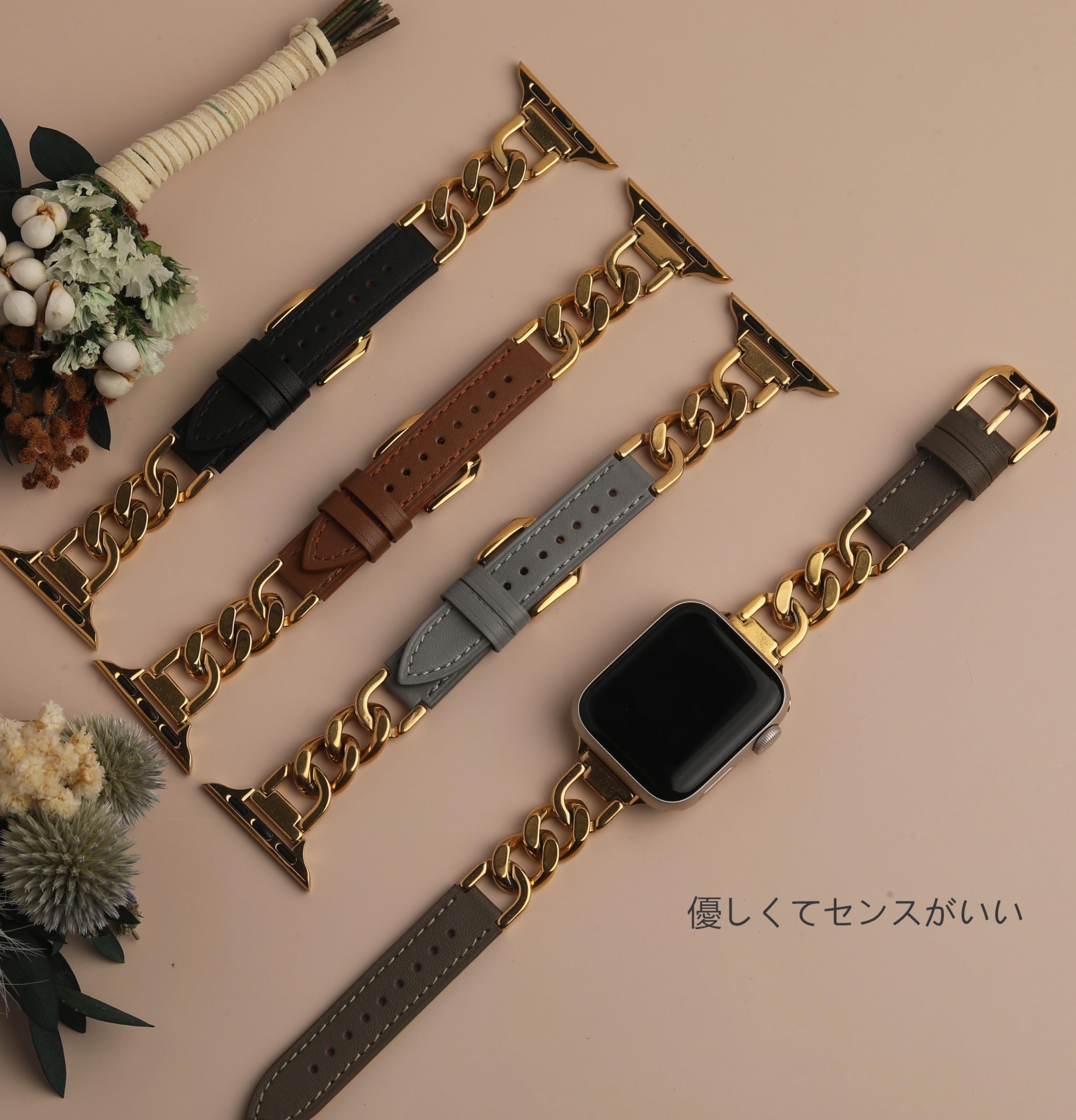 コンパチブル アップルウォッチ バンド本革 Apple Watch バンド ステンレス appleウォッチバンドチェーン 調整工具不要Apple Watch Series Ultra2/Ultra/SE2/SE/9/8/7/6/5/4/3/2/1に対応49mm 45mm 44mm 42mm 41mm 40mm 38mm