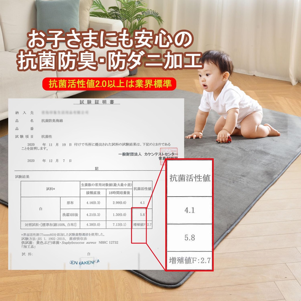 【抗菌防ダニ】ラグマット3畳直接肌に触れるものだから、安心・安全にこだわりました。カーペット3畳の生地は通気性に優れており、菌の繁殖を抑える「抗菌防臭防ダニ」加工済で、そのため、アレルギーが気になる方や、このじゅうたん安心してご利用ください。