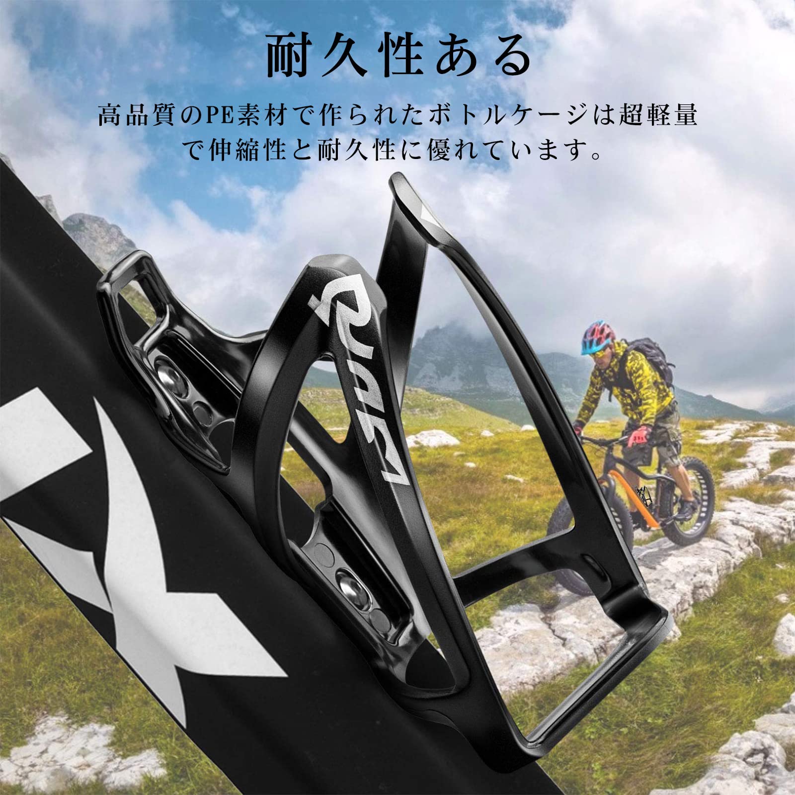 【軽量素材】高品質のPE素材で作られたボトルケージは、超軽量で伸缩性と耐久性に優れています。ドリンクホルダーは軽量ですが、靭性が高く、安定しており、軽さを求めるロードバイク乗りの方にピッタリです。