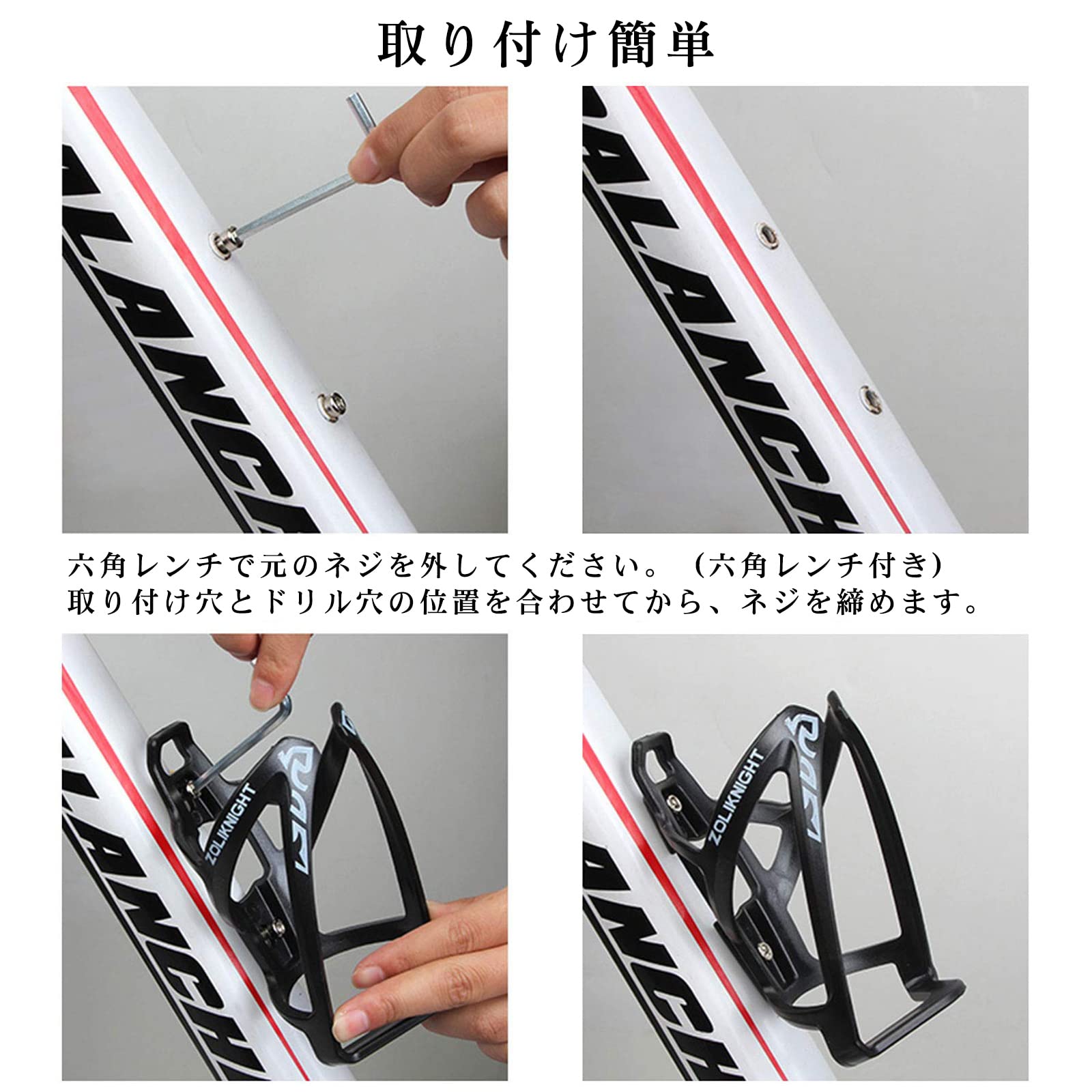 【取り付け簡単】自転車のハンドルバー、フレーム、シートポストなどを好きな場所に取り付けることができて、傷を付けません。ネジと六角レンチなど必要な取り付け金具を含め、ボトルケージの台座に簡単に取り付け可能です。しっかりと固定するためにワッシャーをお勧めします。