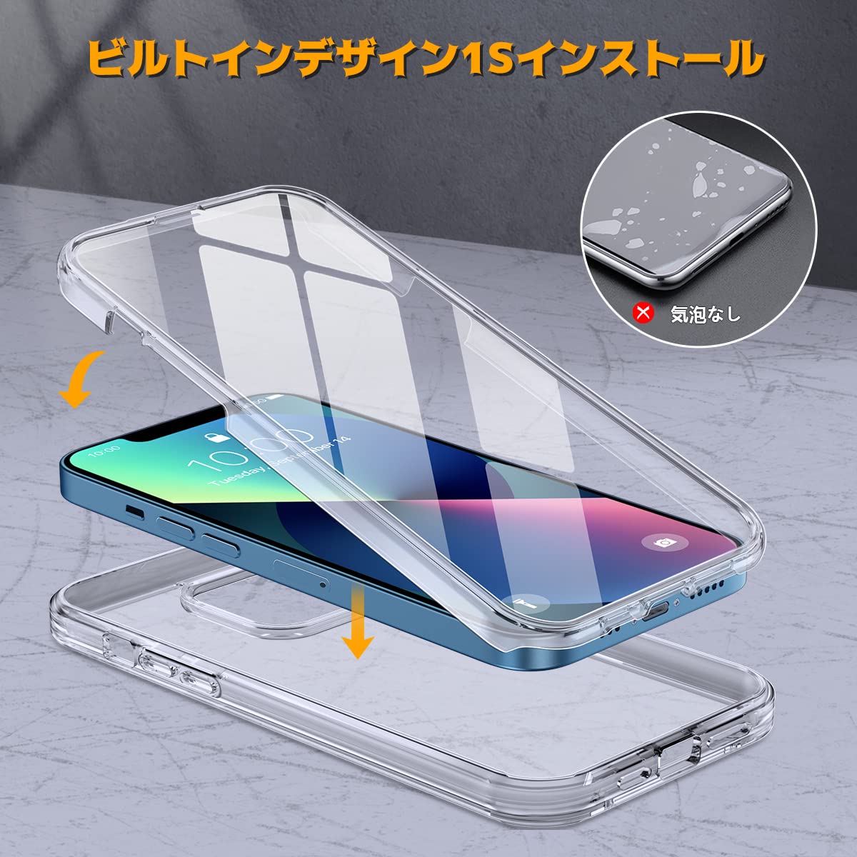 【360°フルボディ保護】9H硬度ガラス+TPUフレーム+背面PCパネルと組み合わせの三層構造、透明なリアプレートはスマホケース iphone 13 用 本体背面のオリジナルカラーを表示すると同時に傷や衝撃などから守ります。