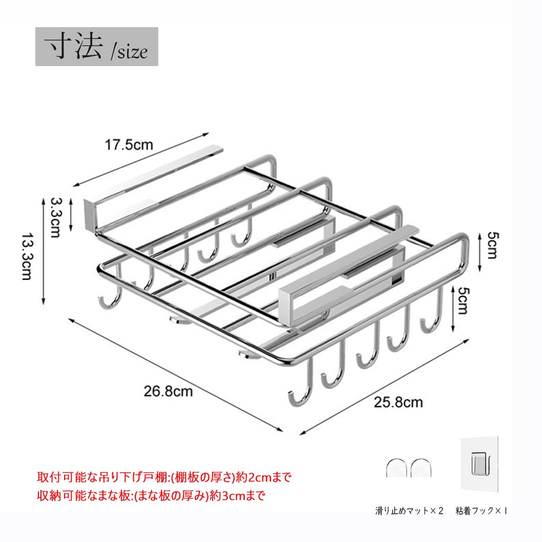 【人気商品】GOENDR まな板スタンド 戸棚下まな板ホルダー まな板置き まな板収納 浮かせる キッチンツール収納 戸棚下キッチンペーパーホルダー 吊り下げラック 布巾ハンガー 鍋蓋収納 ステンレス製 穴あけ不要 ネジ止め不要 完成品【奥行き25.8㎝】 | ニコニコSHOP