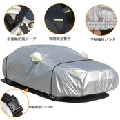 【強い風対策】普通のカバー固定部のロープが壊れやすいです。この問題を解決するため、強力な防風ロープを採用し、縫製部分も補強しました。また、1000+円分の防風ベルト、引き伸ばす長さ4m、 2本セット無料付き。強風や台風が来た場合、車カバーは風に飛ばされません 。