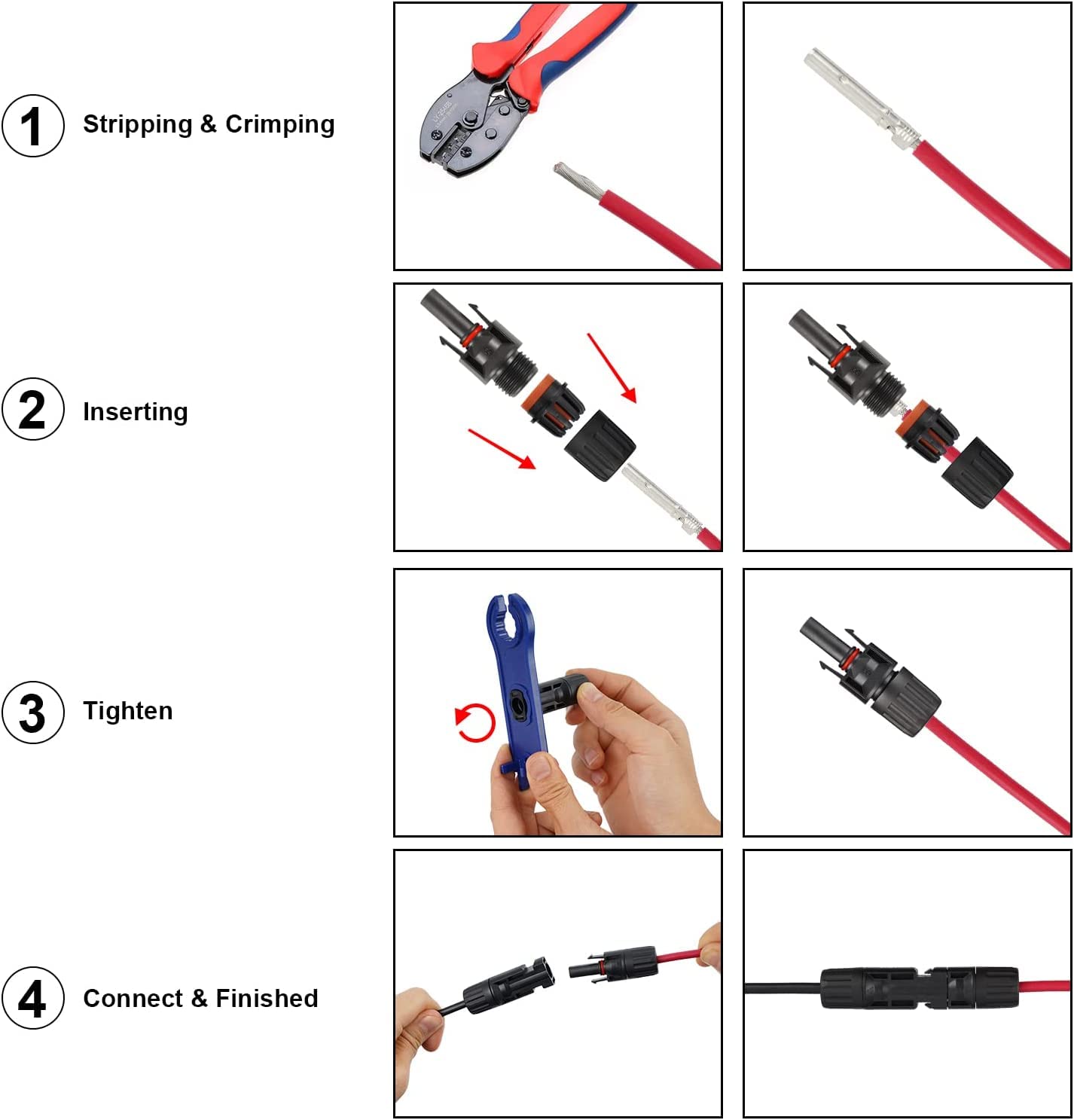 【使いやすさ】無料のソーラーレンチを使用すると、コネクタをすばやく簡単に取り付け、追加のツールなしでプラグを取り外すことができます。取り外しによってプラグが損傷することはありません。