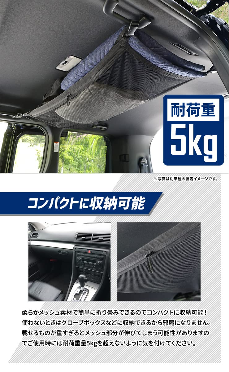 90系 ヴォクシー ノア 専用 天井収納ネット 80x60cm 耐荷重量 5kg ポケット 車用収納 荷物 天井 収納 車中泊 便利 キャンプ 災害 非常 避難