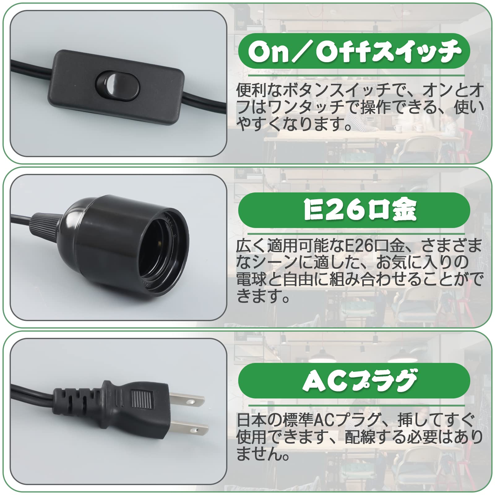 【特価商品】szbritelight 電球ソケット e26 4m コード付き ソケット コンセント 中間スイッチ付き 工事不要 照明器具 おしゃれ ブラック2個セット(電球別売り) | ニコニコSHOP