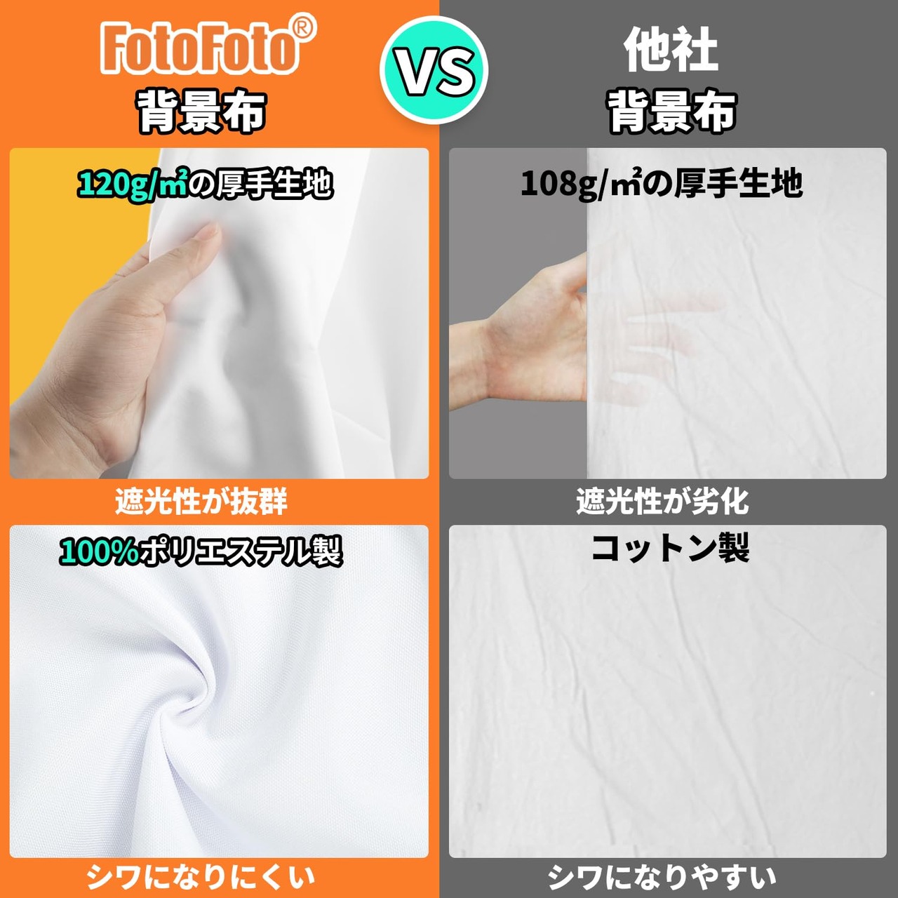 こだわった縫製で100%ポリエステル製:この150×200cmの背景布 白はポリエステルの材質で、綿製よりシワが目立たないし、低温アイロンでシワを簡単に取れます。またしっかりした生地で垂れ感が良い撮影用 背景 白で、素晴らしいスタジオの効果を提供でき、専門な撮影スタジオに適用します。
