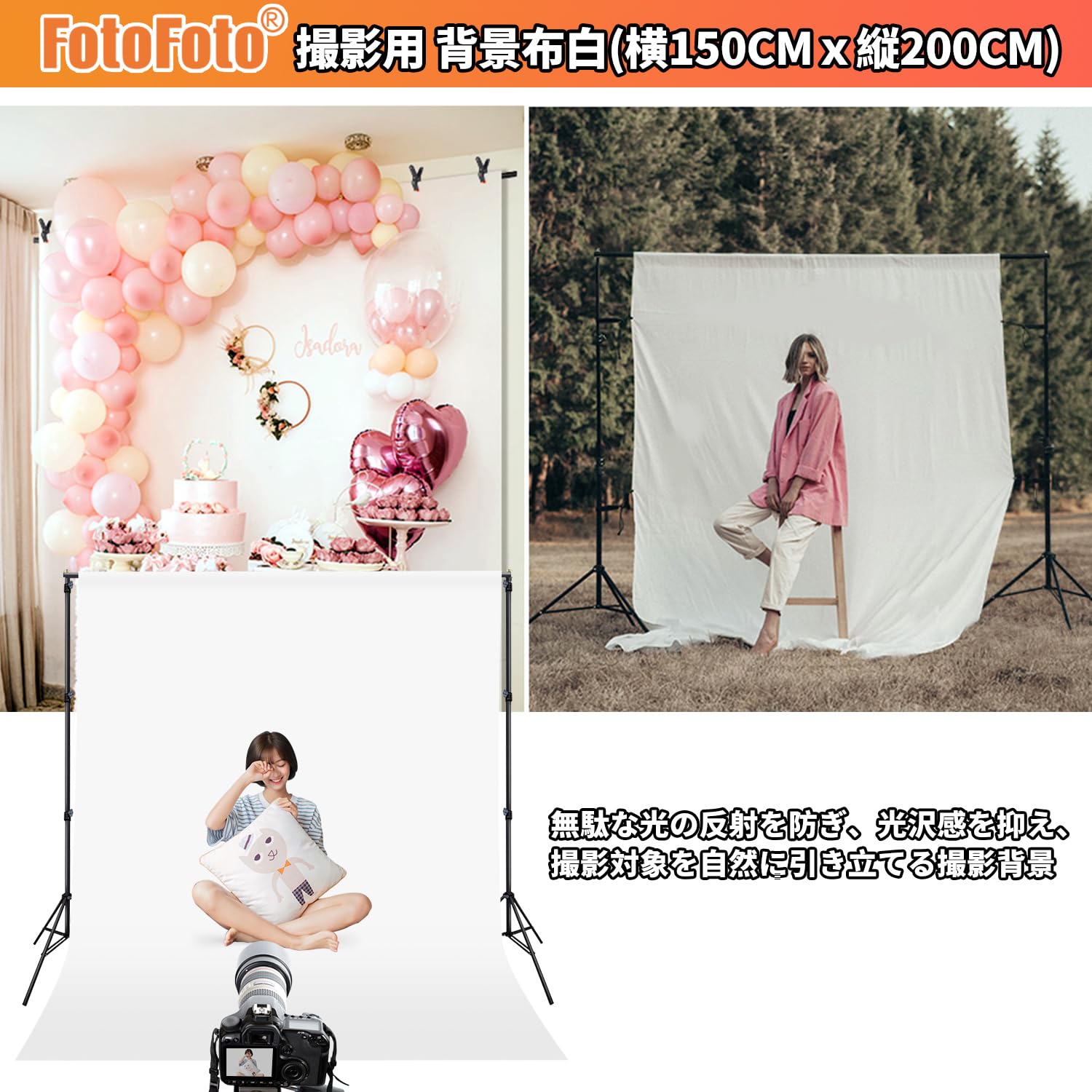 FotoFoto 背景布 白 撮影 背景 白布 1.5m x 2m 撮影用背景シート 折りたたみ 白い布 撮影用 背景 厚地 布 白 プロジェクター 布 背景紙 白 布 糸抜け心配なし バックスクリーン 無地 背景シート 背景紙 白 ポリエステル 撮影用背景布 撮影 布 150cm x 200cm 証明写真/誕生日/結婚式/月齢フォト/文化祭 装飾/お盆飾り棚 white backdrop
