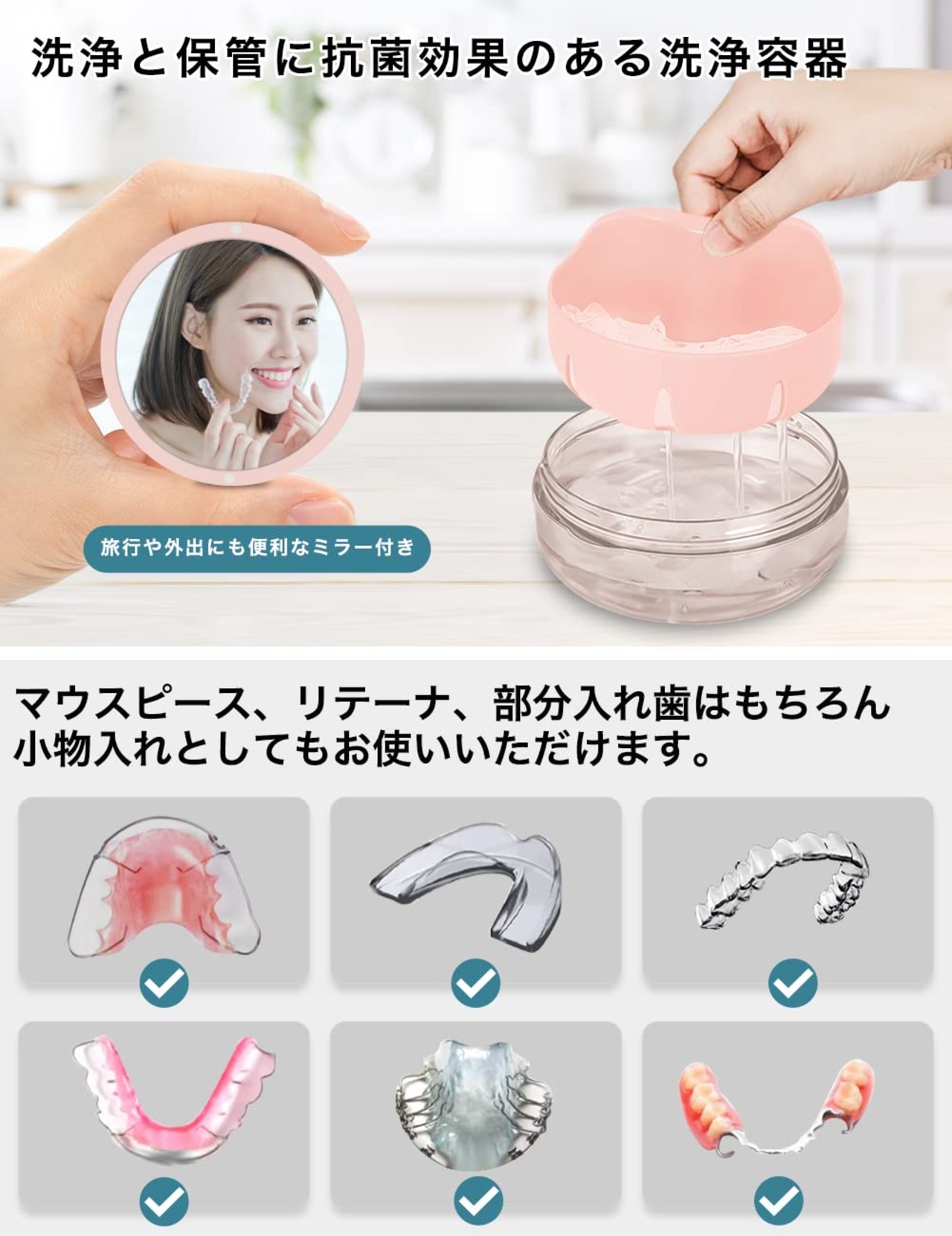 youfo マウスピース ケース リテーナーケース 可愛い密封型 入れ歯 まうすぴーす 矯正 ケース ミラー付き 水漏れしない 携帯用(ピンク)