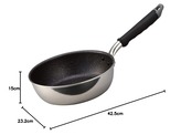 素材・材質:本体/アルミニウム合金、内面/ふっ素樹脂加工 (ダイキン シルクウェアSD)、外面/ミラー仕上げ、底面/ステンレス板着圧、取っ手/フェノール樹脂