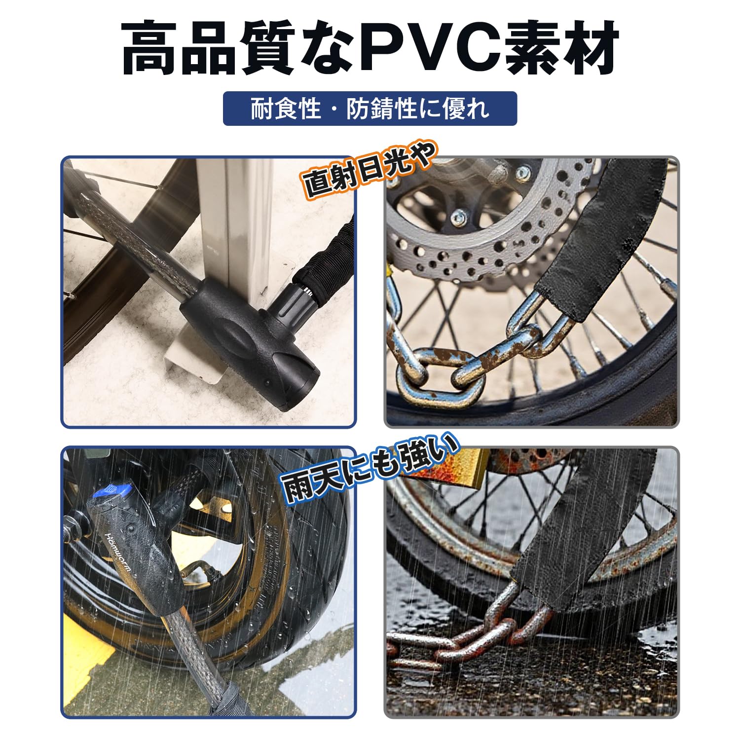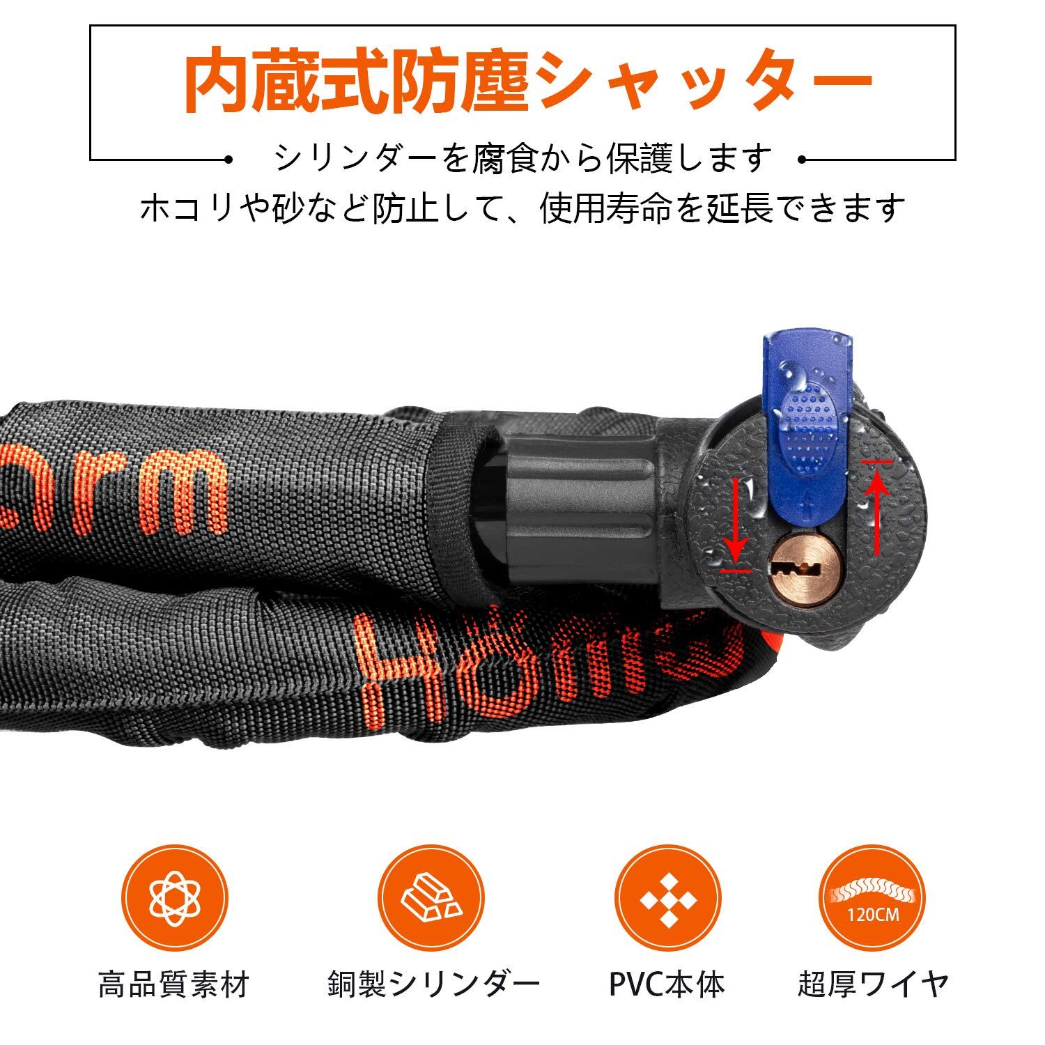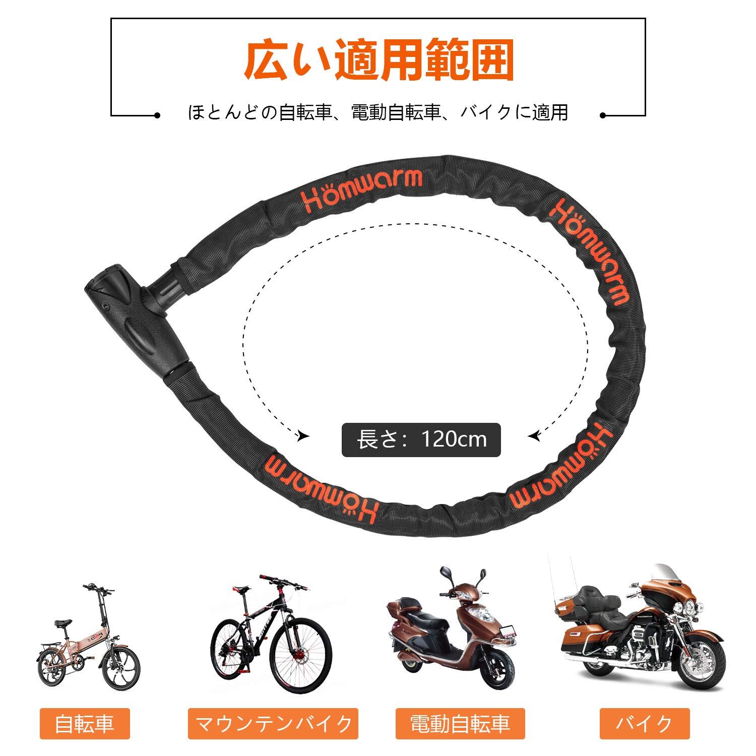 Homwarm バイクロック チェーンロック バイク 自転車 ワイヤーロック φ(直径)22mm×1200mm 頑丈 盗難防止 鍵3本セット (ブラック)