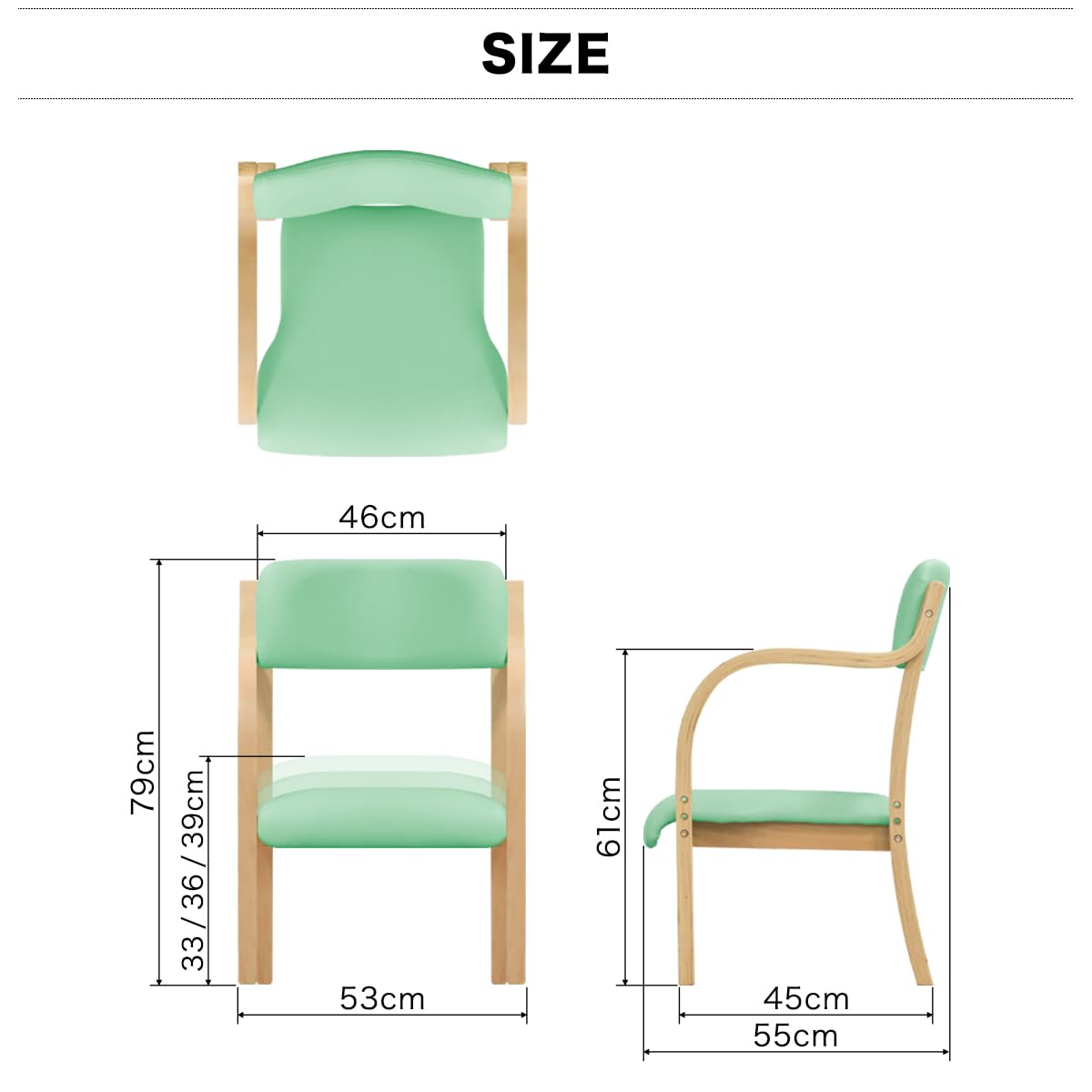 座面の高さ:(約)33cm / 36cm / 39cm (3段階調節) 材質:構造部材:合板 表面加工:ラッカー塗装