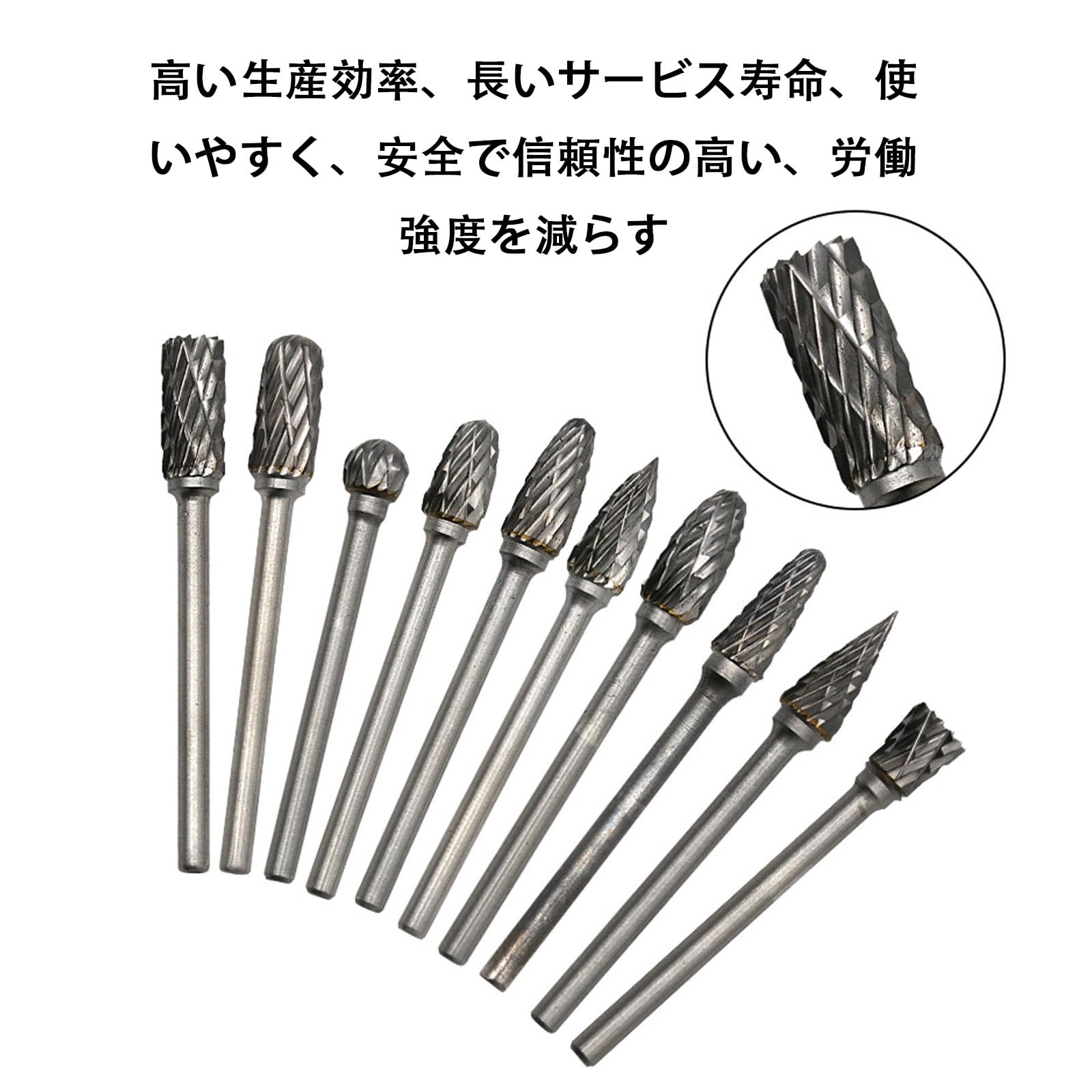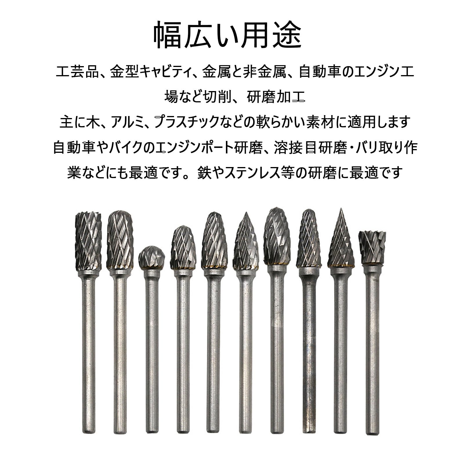 【サイズ】全長約40~50mm、シャンク径:3mm、ヘッド直径:6mm、材質:タングステン鋼。10種類:様々なご使用場面に応じて10種類のヘッドをお選びいただきます。