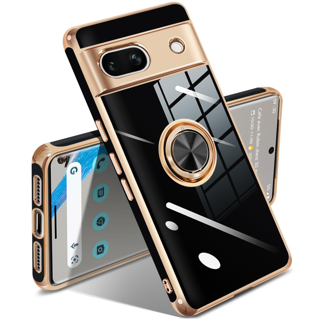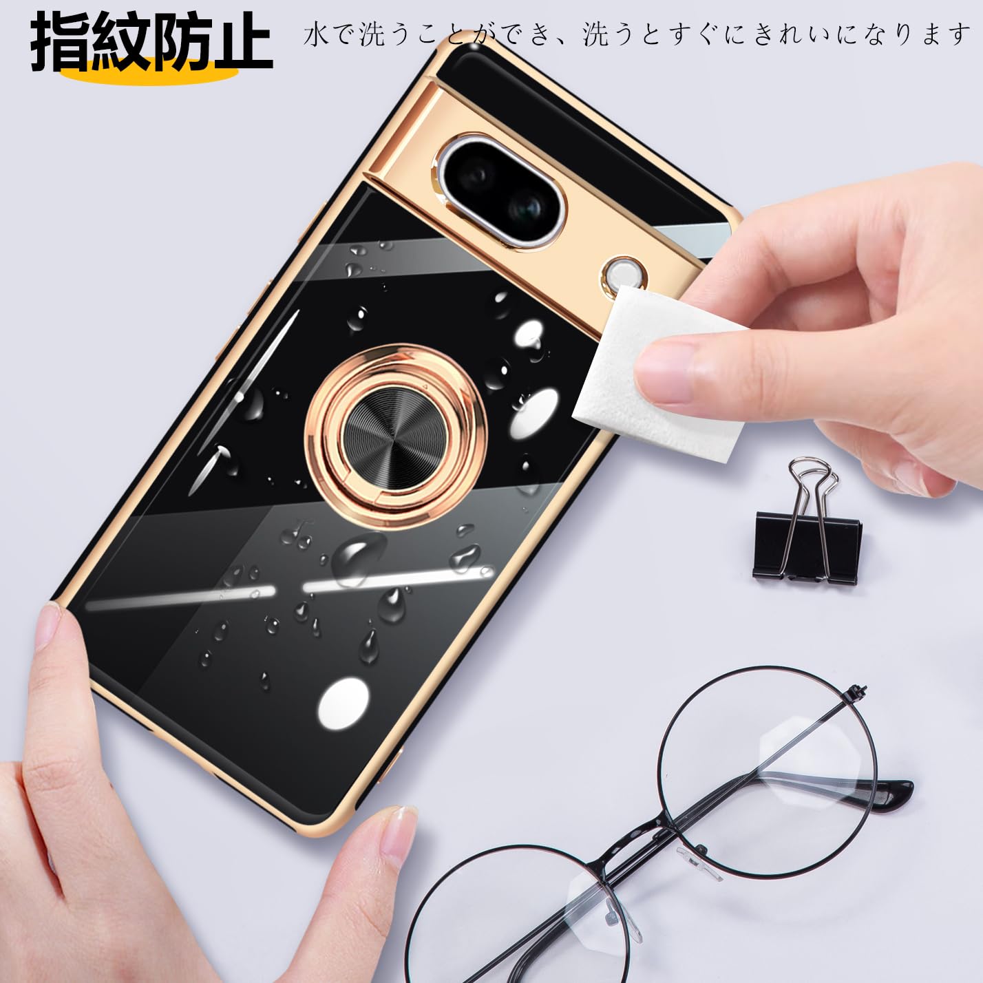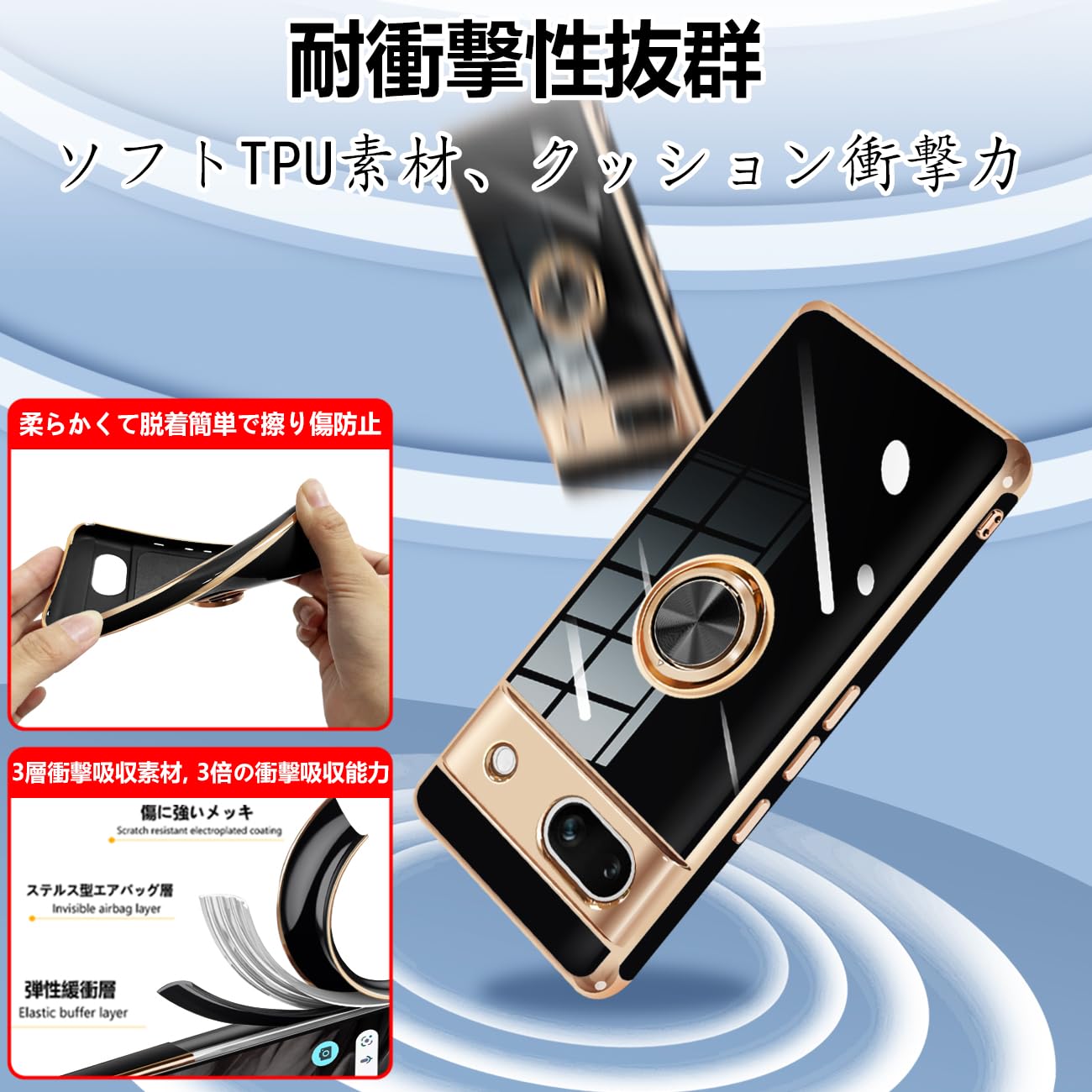 Google Pixel 8a ケース リング付き リング 米軍MIL規格 耐衝撃 ピクセル8a カバー メタリックな質感 磁気吸着 携帯カバー TPU 軽量 人気 スタンド機能 車載ホルダー対応 360°回転 黄変防止 指紋防止(ブラック)