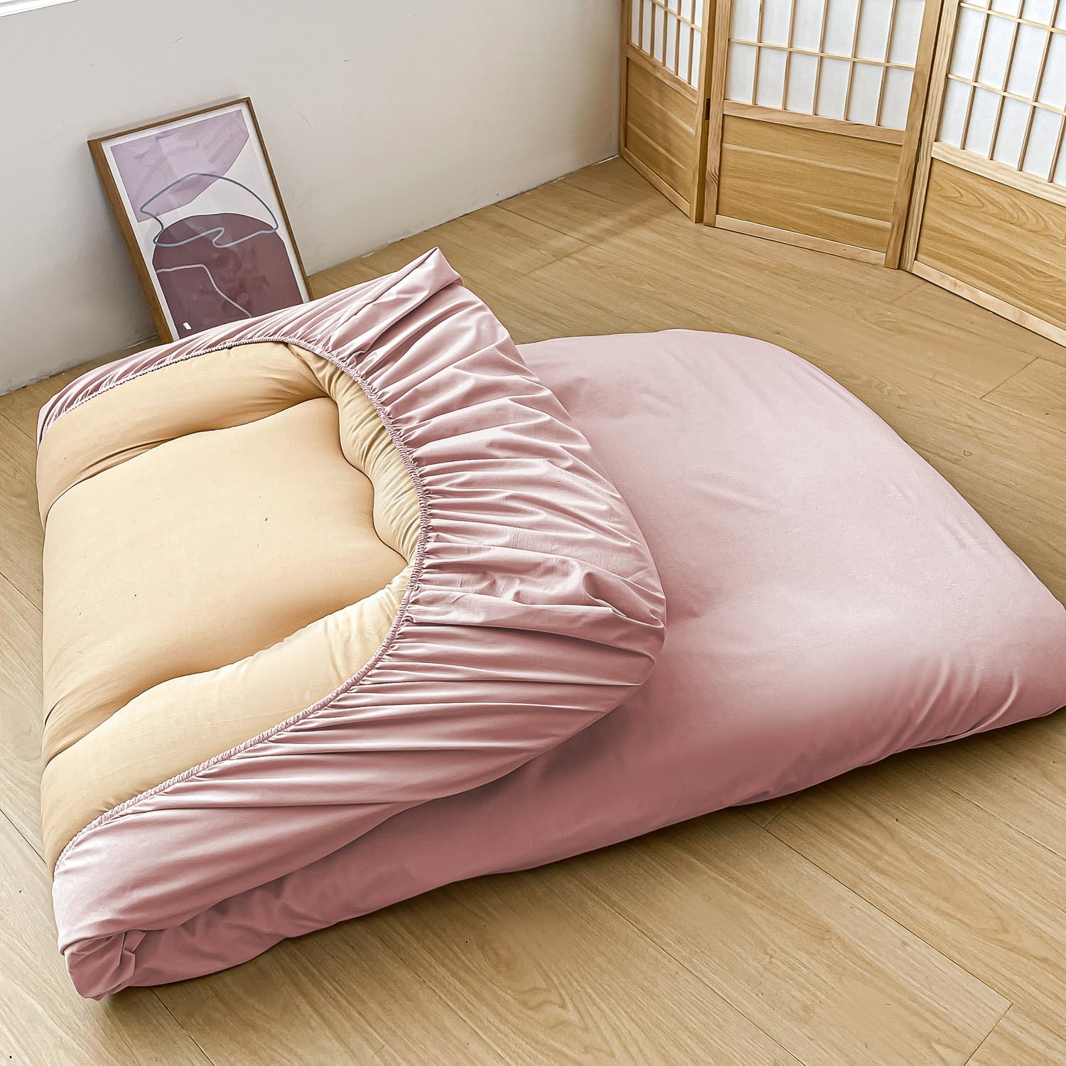【サイズ】シングル:約105x215㎝×厚み最大20cm対応 、敷き布団(100x210cm)に適用です。(裏側はズレにくい全周ゴム仕様で着脱も簡単です)