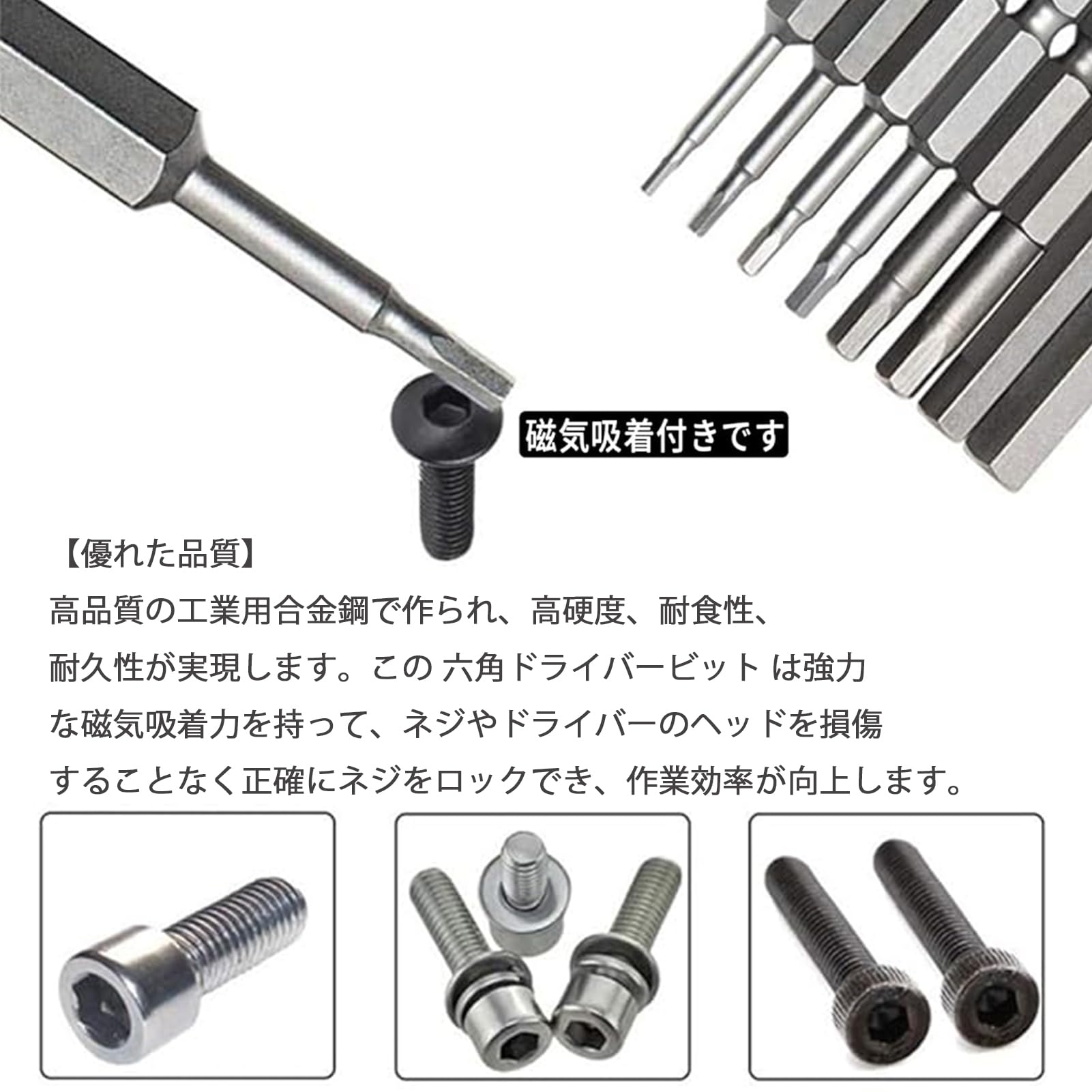 【優れた品質】高品質の工業用合金鋼で作られ、高硬度、耐食性、耐久性が実現します。この 六角ドライバービット は強力な磁気吸着力を持って、ネジやドライバーのヘッドを損傷することなく正確にネジをロックでき、作業効率が向上します。