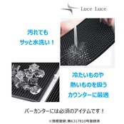 【バーカウンターに最適!】バーマットとしてのサイズ感と厚さもしっかりと1cmあるため、安定感は十分です。グラスや食材、そしてフードまで冷たいものから熱いものまで、バーカウンターで扱うものは様々。カウンターにピタリと密着し、ズレる心配もなく、それらをしっかり安定させてくれます。バーカウンターには必須のアイテムです!