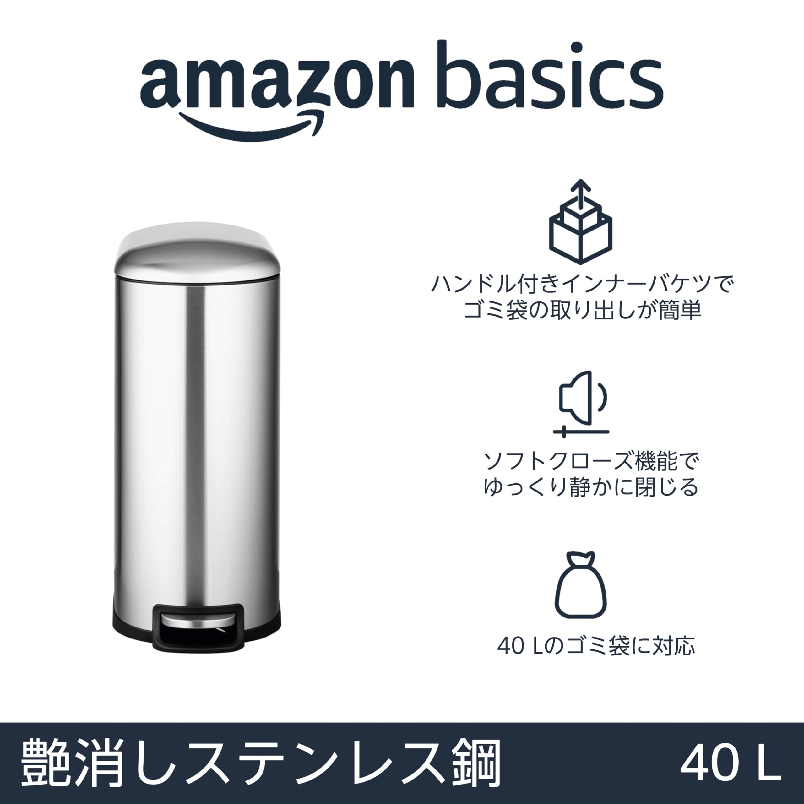ベーシック ゴミ箱 40L(40リットル) ソフトクローズ 静音 スリム ふた付き ペダル付き スチール製 つや消しステンレススチール おしゃれ 長方形